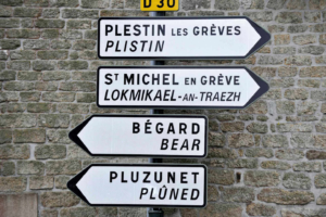 Depuis les années 1970-1980, nous avons l’habitude de lire les noms des lieux en deux langues (le français et le breton), que ce soit à l’entrée des villes, devant une administration ou en pleine nature pour signaler un lieu-dit. Retrouver le nom breton, parfois horriblement traduit en français (ah ! les croissants de nos routes!) permet de recontacter notre histoire, mais aussi une géographie changeante, faite de paysages qui évoluent. Ainsi, on peut trouver le mot « goat » dans un toponyme alors que plus aucune forêt n’est là pour mériter ce nom. C’est de ce rapport entre l’univers breton et la toponymie que Jo Rio nous entretiendra.